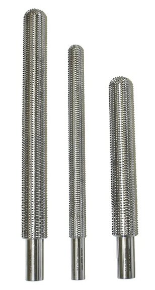 Our rasp hollow cutters, which are made of special steel and are hand-made, work with a low specific surface pressure due the multitude of small teeth. Hence, this ensures good dimensional stability with soft foam because the material is not dragged into the cutter during the milling process. The milling tools are dynamically balanced in two planes, which is why they run so smoothly. Because of its little teeth the rasp hollow cutter makes only quiet grinding noises. Due to the many advantages – as there are: light weight, little surface pressure, low noise, running smoothness – the cutter is best suited for portable machines as well. This includes cutter with or without internal suction. This particular cutter has less chipping space than the SpeedMaster and therefore it is not possible to push so much forward too far. But – just like the SpeedMaster – this cutter generates perfectly done and clean surfaces. The tools can be delivered with an interchangeable top at customer’s request. This additional top will make this tool more flexible.